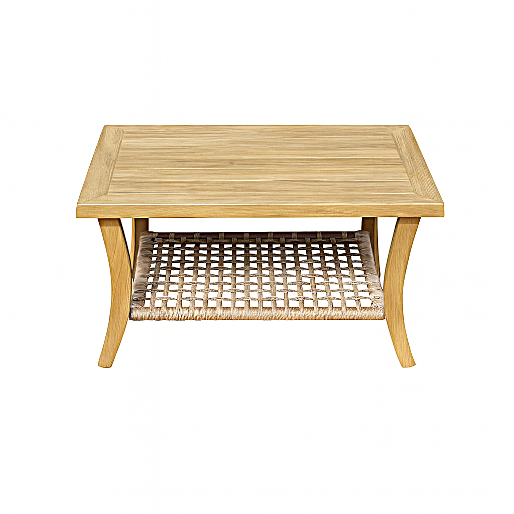 Σετ σαλονιού εξωτερικού χώρου με ξύλινο σκελετό και πλεκτές λεπτομέρειες τύπου rattan. Περιλαμβάνει καναπέ, δύο πολυθρόνες και τραπεζάκι, με άνετα μαξιλάρια σε ουδέτερη απόχρωση. Κατάλληλο για lounge set-ups, garden events, weddings και premium outdoor χώρους φιλοξενίας.