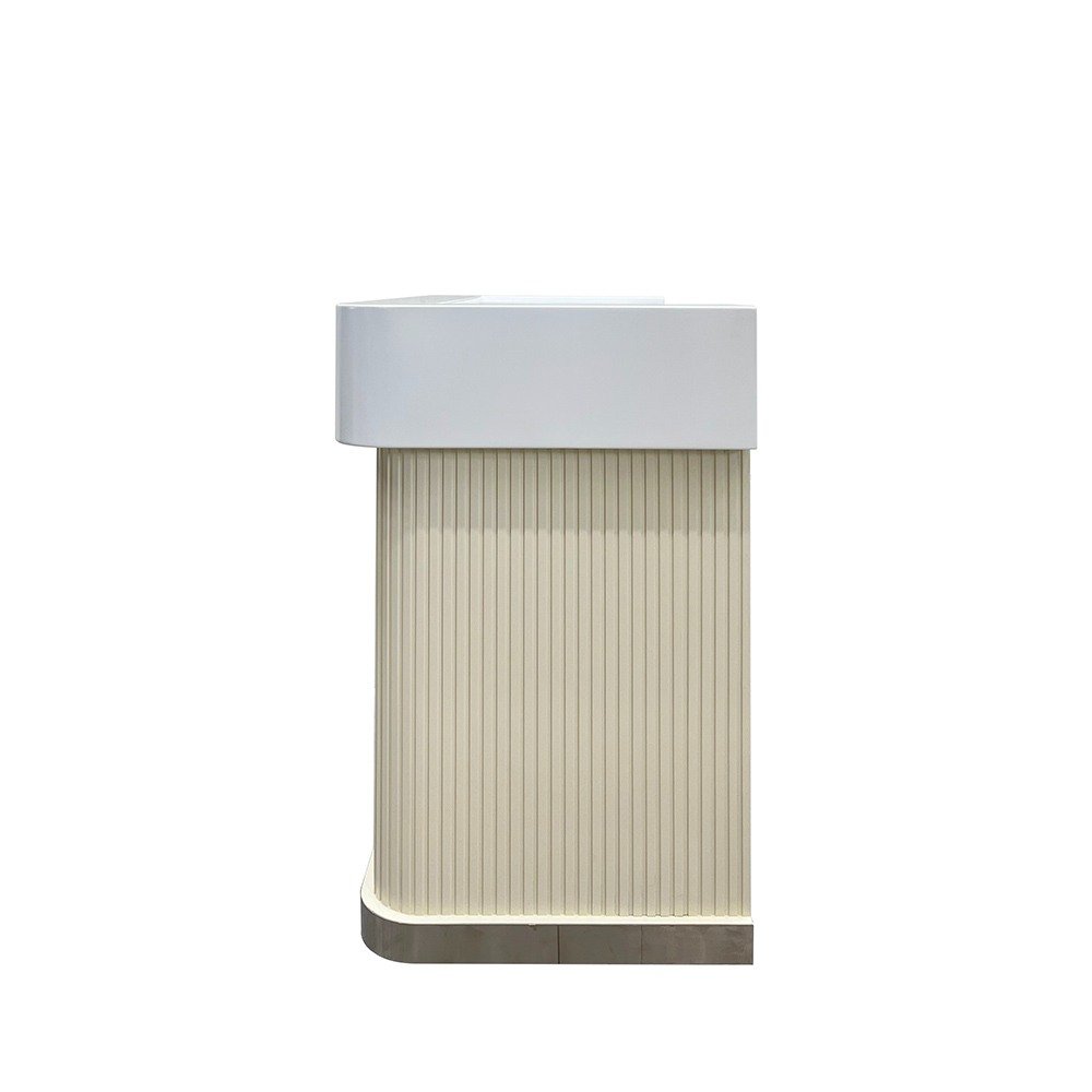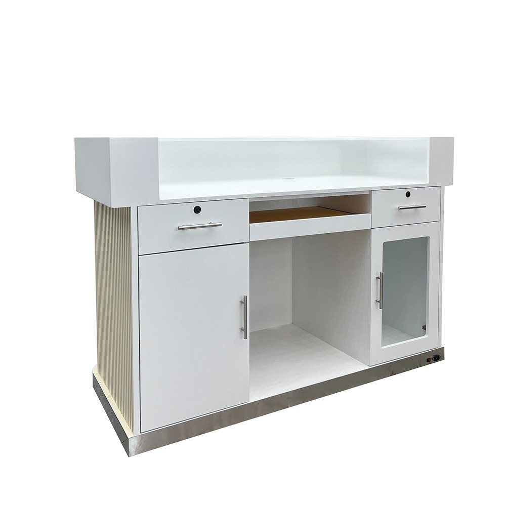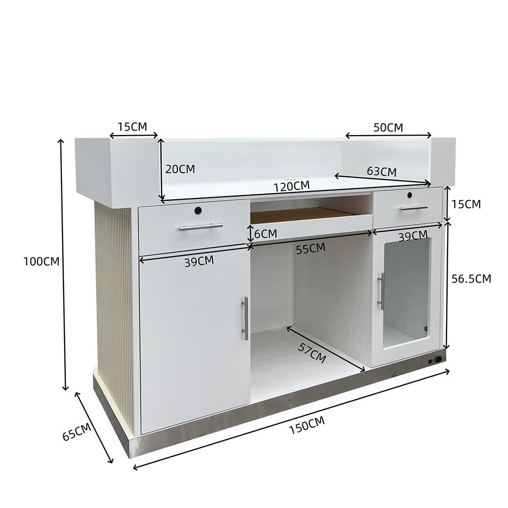 Επαγγελματικός πάγκος υποδοχής για events, εκθέσεις και εταιρικές διοργανώσεις, με περιμετρικό φωτισμό που αναδεικνύει τον χώρο και προσφέρει κομψή, σύγχρονη παρουσία. Ιδανικός για reception desks, συνέδρια και premium brand παρουσίες.