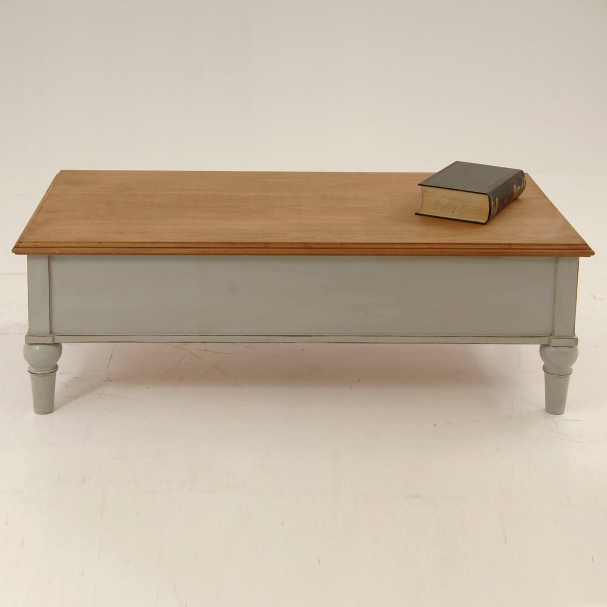 Ένα τραπέζι σαλονιού που συνδυάζει διαχρονική κομψότητα με πρακτικότητα. Η βάση από μασίφ οξιά σε παλαιωμένο ντεκαπέ χρώμα αποπνέει vintage φινέτσα, ενώ το επιφάνεια σε απόχρωση καρυδιάς προσθέτει θερμότητα και χαρακτήρα στο σύνολο.