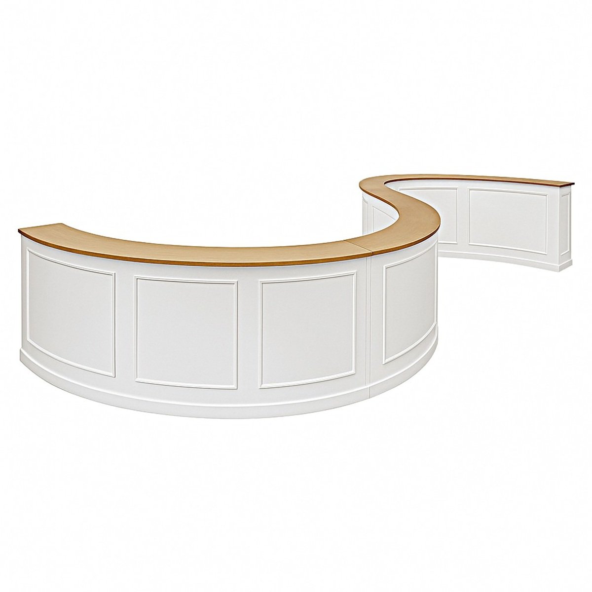 Το Serpentine Bar είναι ιδανικό για εντυπωσιακά events που χρειάζονται μοναδικό design και λειτουργικότητα. Ο καμπυλωτός σχεδιασμός του δίνει ευελιξία στη διάταξη του χώρου, ενώ η λευκή ξύλινη βάση με διακοσμητικά πάνελ και η ξύλινη πάγκος προσδίδουν κομψότητα και πολυτέλεια.