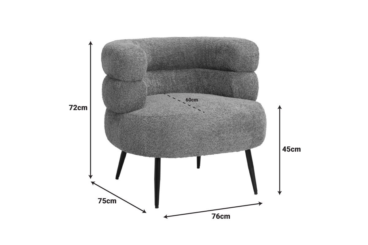 Η Foleja είναι μία μοντέρνα πολυθρόνα με ιδιαίτερη αισθητική και άνεση, για κομψά σαλόνια, VIP γωνίες και διακόσμηση γάμου. Το καμπύλο σχήμα της και η αναπαυτική πλάτη προσφέρουν ξεκούραστη στήριξη, ενώ το ύφασμα τύπου bouclé σε off-white απόχρωση προσθέτει υφή, ζεστασιά και σύγχρονο χαρακτήρα στον χώρο.Βασισμένη σε minimal σχεδιαστική γραμμή, η Foleja συνδυάζεται εύκολα με φυσικά υλικά (ξύλο, μάρμαρο, μέταλλο) και τόσο σε μοντέρνα όσο και σε boho-chic ή timeless classy αισθητική.