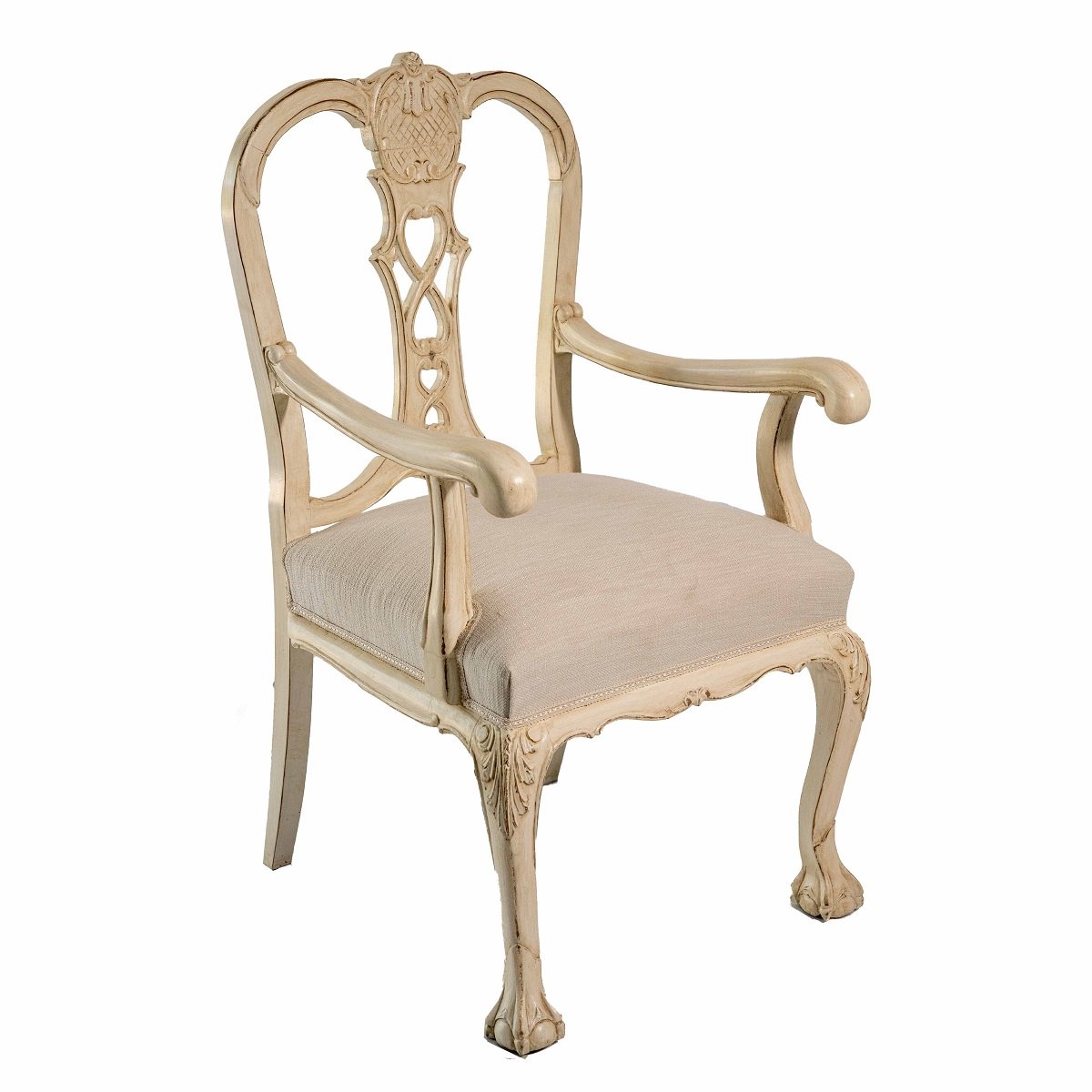 Πολυθρόνα παλιά εγγλέζικου στυλ από ξύλο οξιάς με πατίνα λευκό ντεκαπέ.