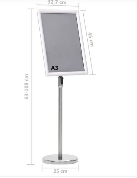 Το stand πληροφόρησης A3 αποτελεί μια κομψή και πρακτική λύση για την προβολή εντύπων, ανακοινώσεων και κατευθυντήριων πινακίδων σε εκδηλώσεις, συνέδρια, εκθέσεις και επαγγελματικούς χώρους.Διαθέτει ανθεκτικό μεταλλικό σκελετό με σταθερή βάση, ενώ η κορνίζα A3 επιτρέπει εύκολη εναλλαγή περιεχομένου. Η επιφάνεια μπορεί να προσαρμοστεί σε διαφορετική γωνία ή προσανατολισμό (portrait/landscape), προσφέροντας ευελιξία ανάλογα με τη χρήση.Ο minimal σχεδιασμός του ταιριάζει σε κάθε περιβάλλον, από corporate events έως γάμους και receptions.