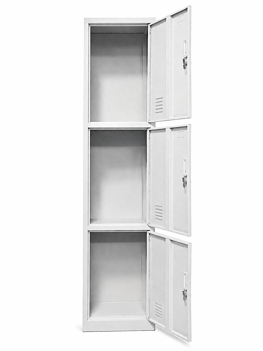 Μεταλλικό ντουλάπι 3 θέσεων με ανεξάρτητες πόρτες και κλειδαριές, ιδανική για ασφαλή αποθήκευση σε επαγγελματικούς χώρους και εκδηλώσεις. Ανθεκτική κατασκευή και minimal σχεδιασμός που ταιριάζει σε κάθε περιβάλλον. Ιδανική λύση για οργάνωση προσωπικών αντικειμένων.