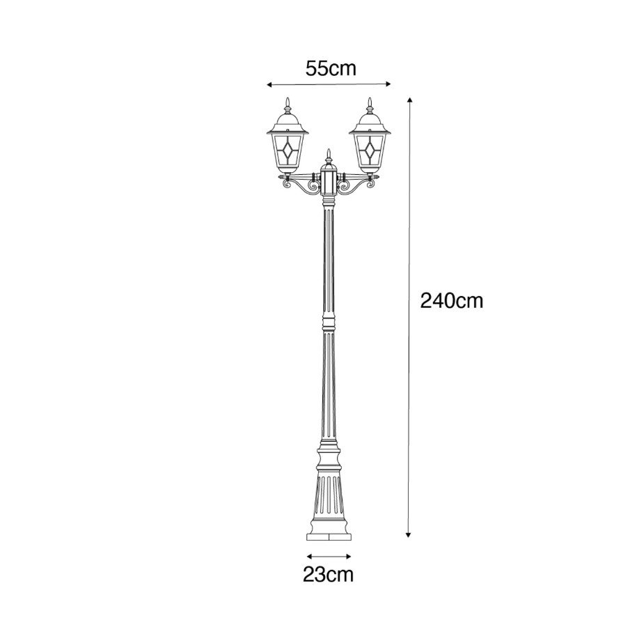 Το διπλό φανάρι δρόμου είναι διακοσμητικό φωτιστικό για εκδηλώσεις. Χρησιμοποιείται σε γάμους, εταιρικά events και outdoor set-ups, σε εξωτερικούς χώρους όπως είσοδοι, διάδρομοι και θεματικές εγκαταστάσεις. Παρέχει ατμοσφαιρικό φωτισμό και κλασική αισθητική για εντυπωσιακά event σκηνικά.